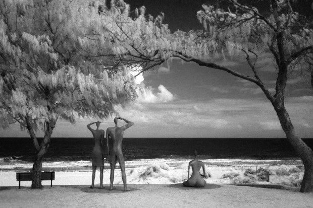 This photograph is shaped by tonal restraint and surface rather than incident. Pale sand, dark water, and muted sky settle into equilibrium, held by the quiet weight of figures at the frame’s edge. Stillness, negative space, and accumulated tone invite slow looking, allowing meaning to emerge without explanation or narrative.