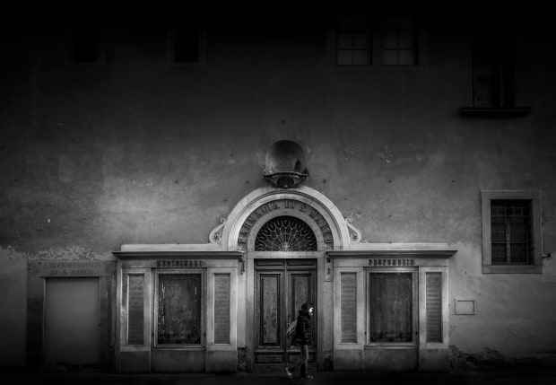 Girls walking past a wall in Italy