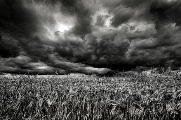 Storm clouds over the crop yet to be harvested