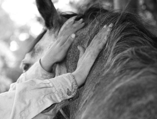 The gentle hands of an Equine Massage Therapist. These hands have the ability to calm and heal the horse