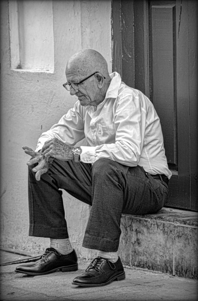 This old guy seemed lost in thought as he sat on a door step in Havana, Cuba.
