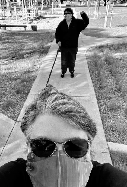 A reflection of the times in which we live. Walking the dog has an extra level of preparation required now.