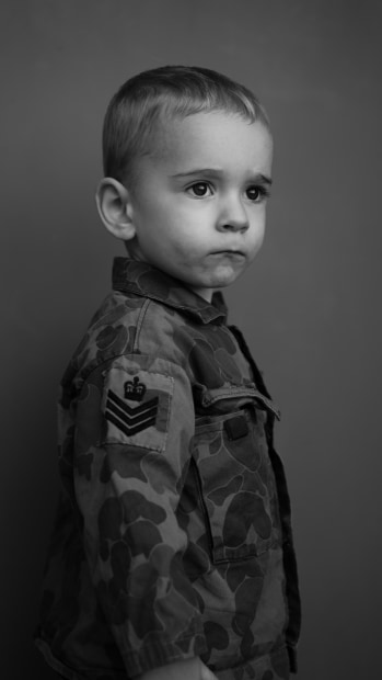 This portrait captures my son dressed in military uniform, evoking a deep sense of loss and vulnerability. The soft, contemplative gaze of the child contrasts with the sharp military insignia, symbolising the premature burden of conflict placed upon the innocent. The composition reflects the military portraits of soldiers taken prior to deployment in wars past and shows the soldier as the child they once were. The image resonates as a reflection on the societal and emotional toll of war, compelling the viewer to confront the sacrifices made by the most vulnerable - our youth.