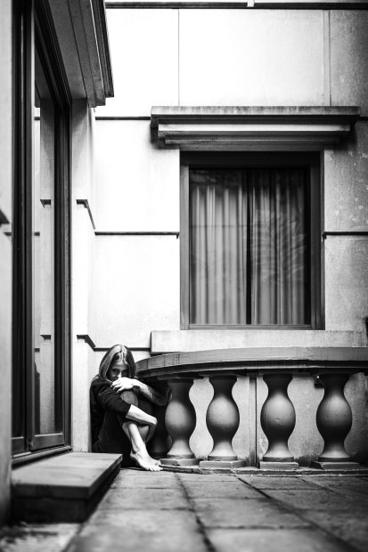 The moment makes us fold, not in surrender, but in self-preservation. She hides in plain sight, suspended between inside and out, between safety and exposure. This is the architecture of uncertainty, where stillness becomes a shield. The indecision lingers: is she too small to be seen, or too large to be ignored? On this threshold, emotion sharpens into shape.