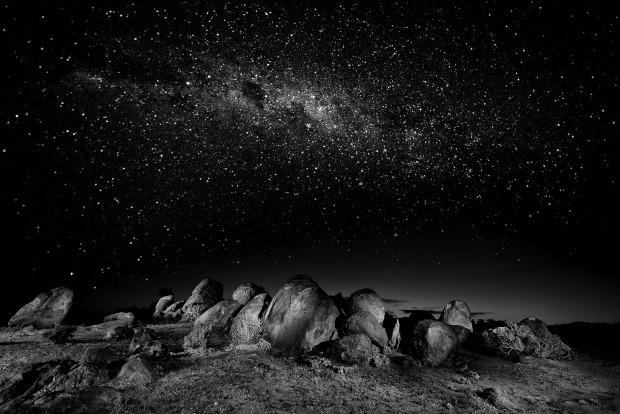 Clear winter night sky and granite boulders near the outback town of Tibooburra.