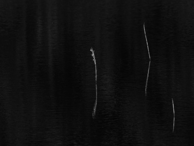 Taken at Tower Hill, Warrnambool Vic of three stems of dried grass in the lake.