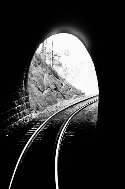 A shot from the rear of the Westlander train through one of the many tunnels on the descent of the Toowoomba range.
