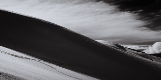 "Mountains Embody Power, Silence and the Mind" My love for the Mount Bogong area in northeast of Victoria is ongoing hence why I keep going back as much as I can. It is near where my Father was born in the small town of Tawonga. We have holidayed there over many years and it holds many memories of swimming, camping and hiking throughout. My Father may be one of the very few people that has witnessed the migration of the Bogong Moth flying up the valley and over the summit. In the Australian Aboriginal Waywurru and Dhudhuroa languages, the mountain is named Warkwoolowler, meaning the mountain where Aboriginal people collected the Bogong Moths. At present this is an ongoing series of photographs that documents my many hikes and snowboarding trips up Mt.Bogong. Image: A alpine skier trekking out after skiing down one of many valleys on Mt.Bogong