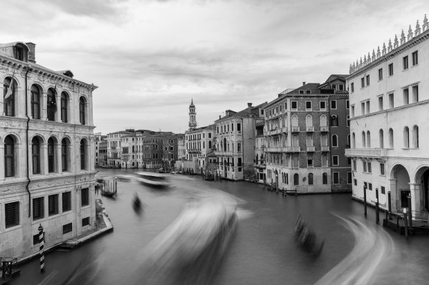 A long exposure of the Venetian highway blurring the Vaporetti and the Gondolas.