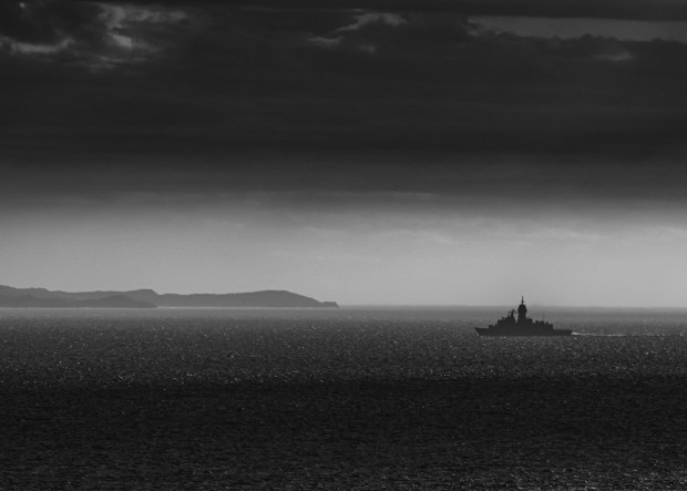 A navy ship entering off the coast of Rotnest Island