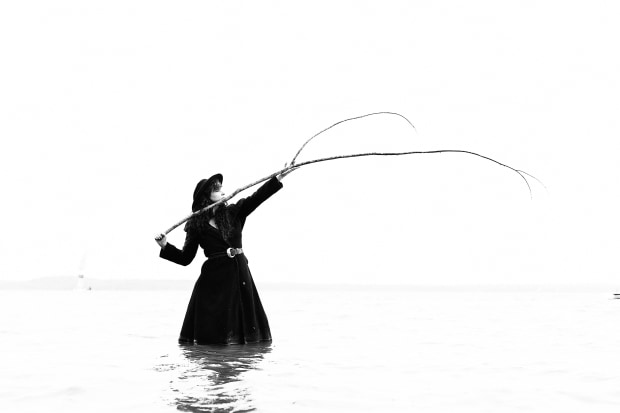 Musician vYn stands in the warm waters of Lake Weyba. A place of deep sorrow.