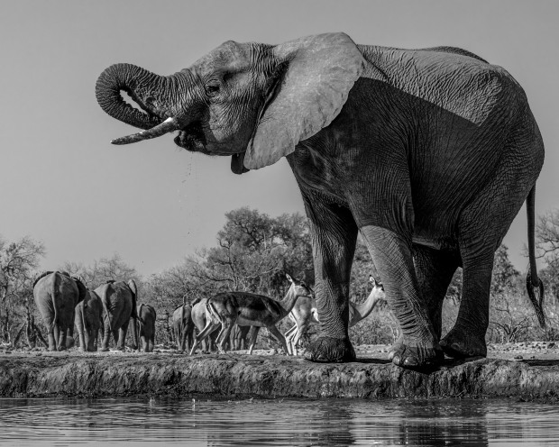 A young elephant getting one last drink as the herd moved off, it was a wait for me moment as he scurried off to catch up