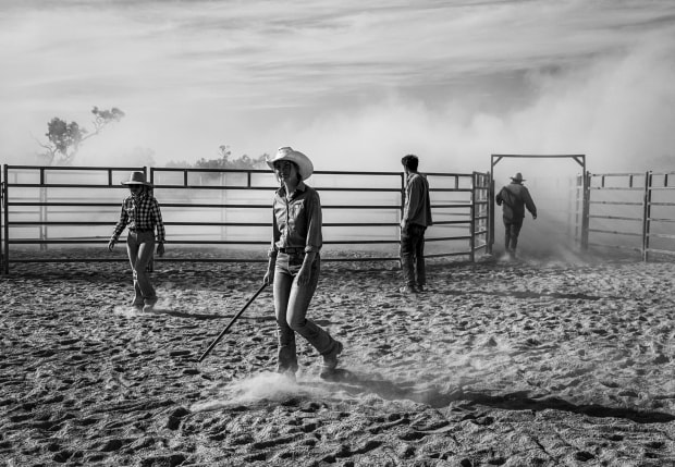 After a hard week of cattle work, musterers walk back to the utes after loading a truck. Long days and hot weather take there toll - most are too tired to even smile for the camera.