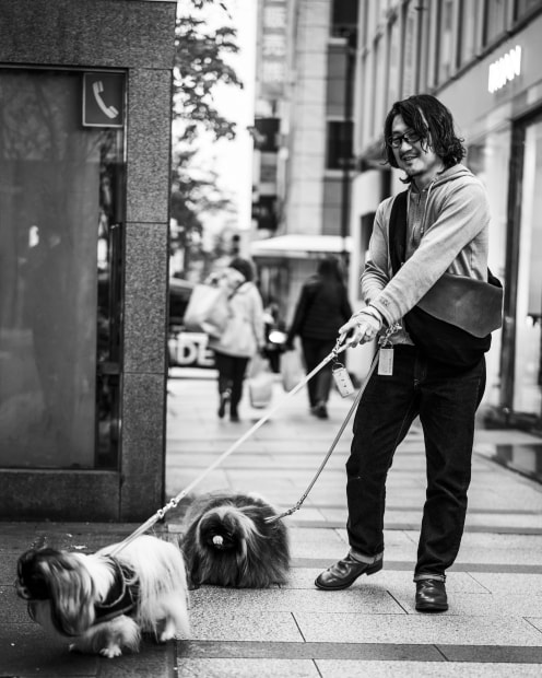 Big cities usually mean small pets on the street. And watching this man with his two dogs was like a magician in action as he guided his dogs down the sidewalk.