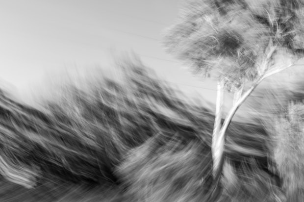Trees waltzing to the beat of the wind and passing cars.