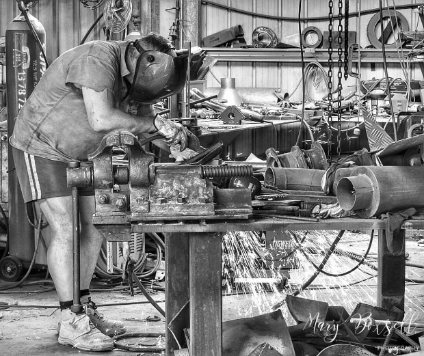 Captured my husband welding one weekend in his workshop