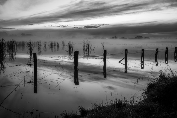 Foggy early morning sunrise over McLeouds Morass in East Gippsland, Victoria.