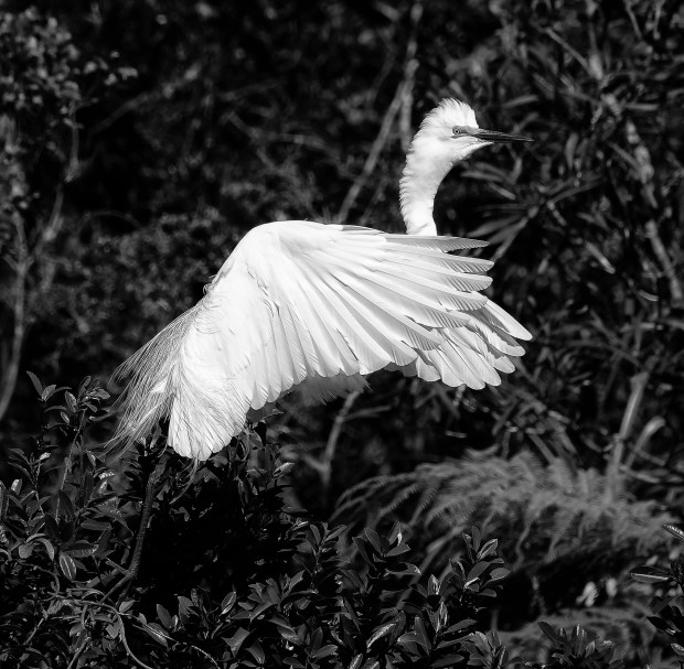 A graceful White Herron , captured at Whataroa , NZ .