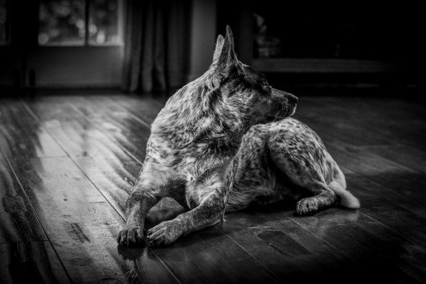 My Australian Cattle Dog listening for visitors. Maleny, Queensland, June 2021.