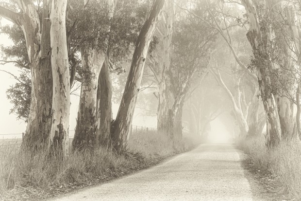 The tunnel of gums on a road from my childhood in sepia tones to reflect an a time gone by. Shooting on a foggy morning adds to the feeling of haze of memories
