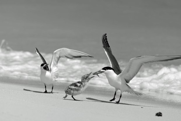 Photographed at Michelmas Cay, out from Cairns. It was pleasing to catch this engaging family moment as an adult arrived back with a small fish for the youngster.