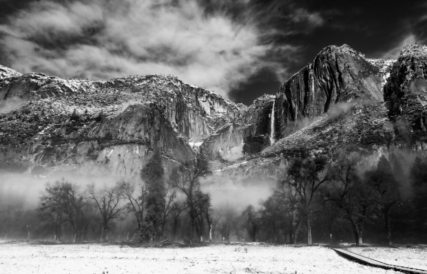 Yosemite National Park in the U.S.A Covered by snow, showing spectacula Mountains